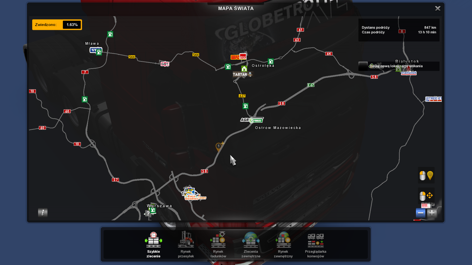 | Opis | Dzień Dobry. Gram na wersji gry 1.42, Promodsie 2.57 oraz Poland Rebuilding 2.5.2. Wynika to z faktu, że późniejsze wersje nie mają połączenia z Rusmapą, a bez niej frajda z gry jest mniejsza. Zauważyłem, że gdy zrobię profil z samym Promodsem Piotrków Trybunalski i Krasnystaw są normalnie na mapie. Po włączeniu PR znikają. Dodatkowo droga S8 tuż za Ostrów Mazowiecką się nie łączy z tę od Białystoku. To samo tyczy się obwodnicy Lublina oraz drogi podporządkowanej na 17 od Radomia na wschód - gdzie wszystkie trzy drogi są na samym promodsie normalnie połączone. Pozdrawiam! | ||||