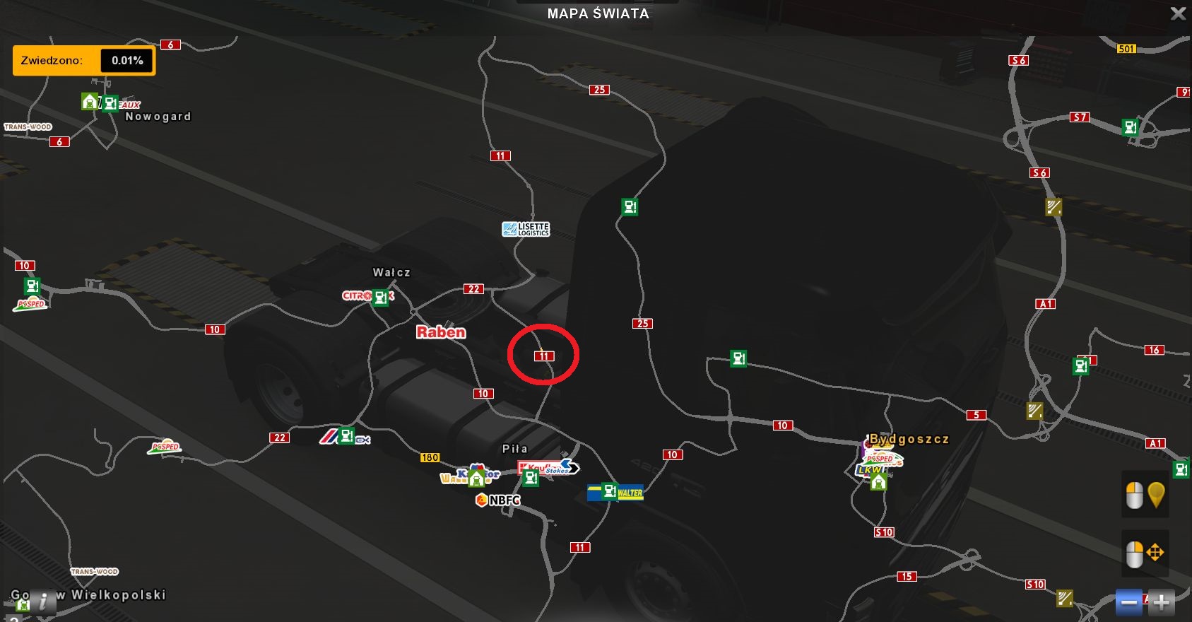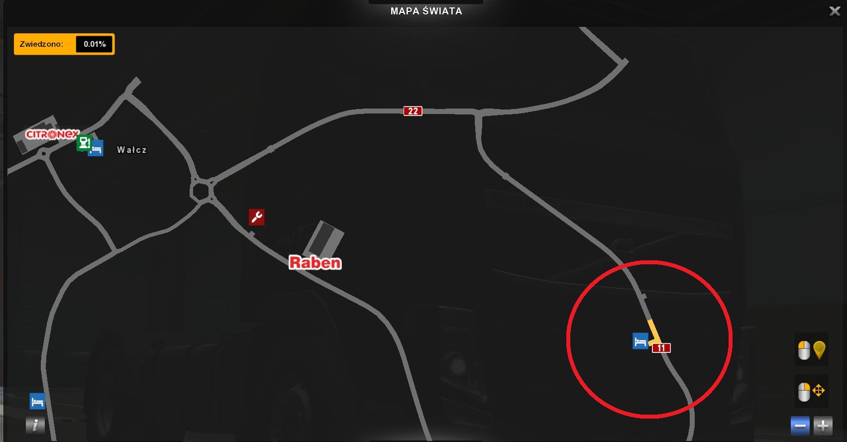 | Opis | Na parkingu przy drodze krajowej numer 11 na odcinku Wałcz - Piła nie da się spać (nie ma komunikatu o wyłączeniu silnika i naciśnięcia ENTER). | ||||