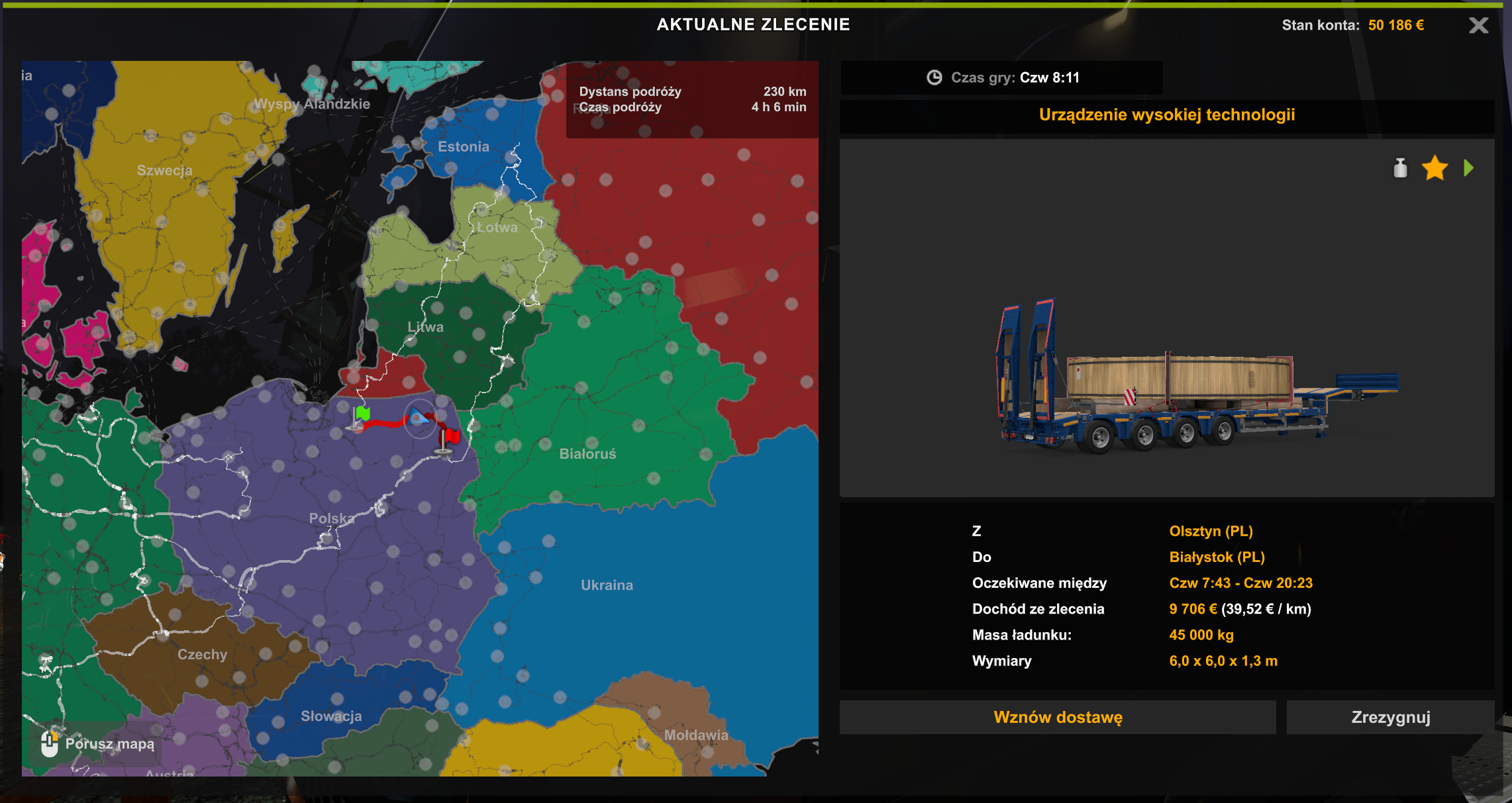 | Opis | While delivering a heavy cargo with pilot assist from Olsztyn to Ełk delivery via given route is not possible. | ||||